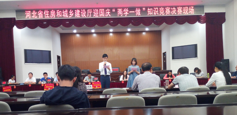 為進(jìn)一步推動(dòng)“兩學(xué)一做”學(xué)習(xí)教育深入開展,河北省住房和城鄉(xiāng)建設(shè)廳在9月下旬開展迎國(guó)慶“兩學(xué)一做”知識(shí)競(jìng)賽,由省住建廳各部門和下屬單位各黨委(支部)組成的20支代表隊(duì)參加了初賽,其中包括我單位代表隊(duì)在內(nèi)的六個(gè)代表隊(duì)進(jìn)入了決賽。9月29日下午,經(jīng)過(guò)緊張激烈的現(xiàn)場(chǎng)競(jìng)答,我單位代表隊(duì)在決賽中獲得三等獎(jiǎng)。此次活動(dòng)是“兩學(xué)一做”學(xué)習(xí)教育的重要內(nèi)容和載體,通過(guò)廣泛深入學(xué)習(xí)黨章黨規(guī)和系列講話,增強(qiáng)了看齊意識(shí)、組織意識(shí)和遵規(guī)守紀(jì)意識(shí),對(duì)提高黨性修養(yǎng)、加強(qiáng)黨員隊(duì)伍作風(fēng)建設(shè)具有重要的推動(dòng)作用。