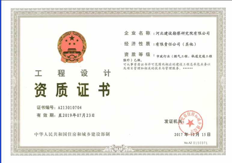 經(jīng)過艱苦努力,我公司于2017年12月15日取得了市政行業(yè)(燃?xì)夤こ獭④壍澜煌üこ坛猓┰O(shè)計乙級資質(zhì)證書,為我公司進(jìn)一步拓展相關(guān)市政設(shè)計業(yè)務(wù),進(jìn)而從事市政建設(shè)工程總承包業(yè)務(wù)創(chuàng)造了良好的條件。