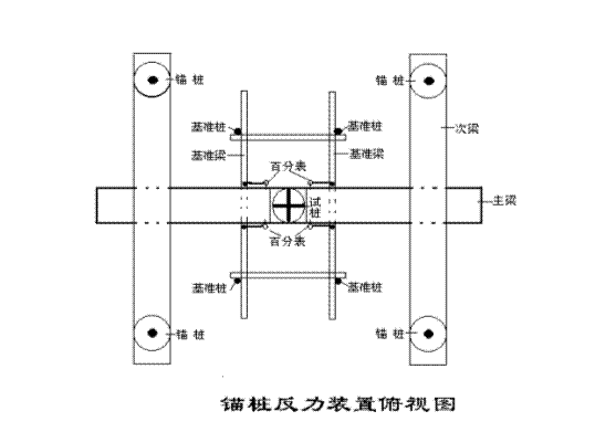 錨樁反力裝置就是將被測樁周圍對稱的幾根錨樁用錨筋與反力架連接起來,依靠樁頂?shù)那Ы镯攲⒎戳茼斊穑杀贿B接的錨樁提供反力,提供反力的大小由錨樁數(shù)量,反力架強(qiáng)度和被連接錨樁的抗拔力決定。錨樁反力裝置一般不會受現(xiàn)場條件和加載噸位數(shù)的限制,當(dāng)條件允許,采用工程樁作錨樁是最經(jīng)濟(jì)的。