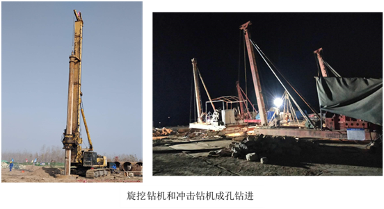 本工程主要包括從黃河左岸大堤位置起,大橋主橋17#、18#和19#墩三個(gè)墩的樁基工程,主要工作內(nèi)容為:成孔、水下混凝土灌注和配合樁基檢測(cè)。自2018年11月22日開工,2019年5月19日全面竣工,共計(jì)179天,投入旋挖鉆機(jī)TR360D 1臺(tái),沖擊鉆機(jī)6臺(tái),空壓機(jī)1臺(tái),泥漿處理器1臺(tái)。施工完成后,經(jīng)相關(guān)單位檢測(cè)和驗(yàn):本工程鉆孔成孔深度、成孔直徑符合設(shè)計(jì)要求;入巖深度和巖石強(qiáng)度符合設(shè)計(jì)要求;樁基超聲波檢測(cè)合格率100%,優(yōu)良率100%。