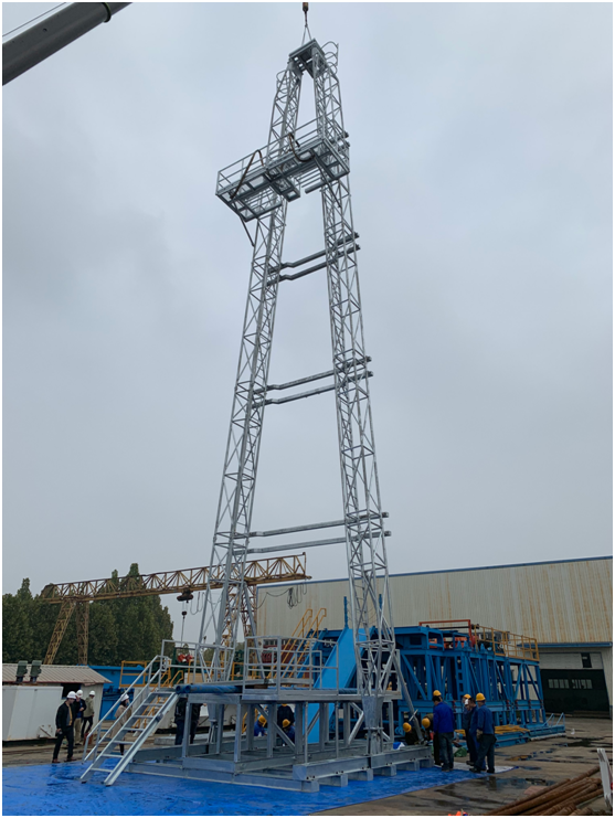 河北建勘鉆探設(shè)備有限公司為日本金泉株式會社研制的A25-50/1.5(RESORT 21HD)熱鍍鋅鉆塔,已經(jīng)全部安裝調(diào)試完成,2019年10月17日,日本內(nèi)田金泉株式會社的總經(jīng)理內(nèi)田米房一行來到河北建勘鉆探設(shè)備有限公司,對銀光閃閃的鉆塔外觀質(zhì)量、安裝過程、基本參數(shù)進行了檢查驗收,對鉆塔設(shè)計制造綜合技術(shù)指標評價滿意,順利通過日方驗收。
