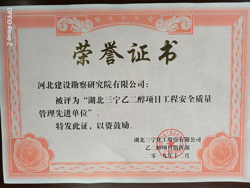近日,由我公司參與承建的湖北三寧化工股份有限公司合成氨原料結構調整及聯(lián)產(chǎn)60萬噸/年乙二醇項目樁基工程項目,收到業(yè)主湖北三寧化工股份有限公司乙二醇指揮部發(fā)來的表揚信和榮譽證書,對項目部全體成員的突出表現(xiàn)給予了高度認可和評價,并授予“湖北三寧乙二醇項目工程安全質量管理先進單位”榮譽。我們將繼續(xù)保持優(yōu)良的風貌,鐵軍的風范,圓滿完成后續(xù)工程!