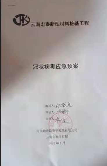 在新聞報(bào)道疫情初期,正月初二,云南宏泰樁基工程項(xiàng)目部便成立應(yīng)急小組,為抗擊疫情做了很多預(yù)防措施,編制應(yīng)急預(yù)案。