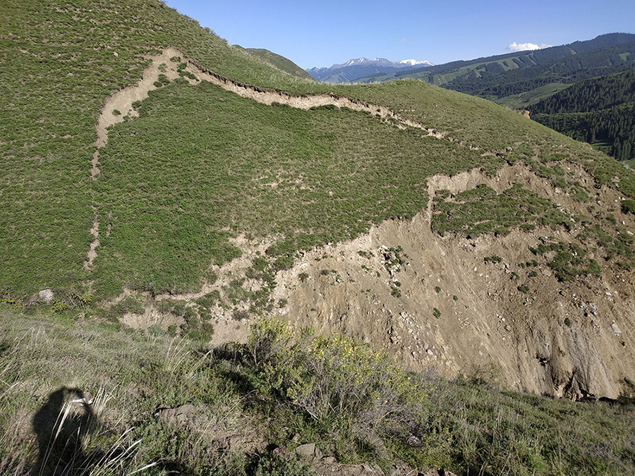山體滑坡:白楊溝豐源煤礦生產(chǎn)調(diào)度樓北側(cè)邊坡出現(xiàn)了滑坡,滑坡體表面巖土體松散,在降雨條件下有進(jìn)一步發(fā)生滑坡的可能?;缕履_下有安全生產(chǎn)調(diào)度樓等建(構(gòu))筑物,如果再次發(fā)生滑坡,會危及生產(chǎn)調(diào)度樓及其周圍建筑物的人員生命和財產(chǎn)安全,因此需要對該滑坡進(jìn)行勘查及治理,保證人員生命和財產(chǎn)安全。