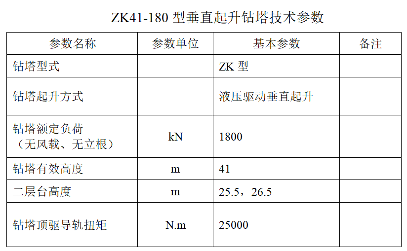 ZK41-180型垂直起升鉆塔起降平穩(wěn),占地面積小,安裝快捷方便,較少高空作業(yè),確保人身安全,滿足狹小區(qū)域內(nèi)大型深井鉆探施工的需要。