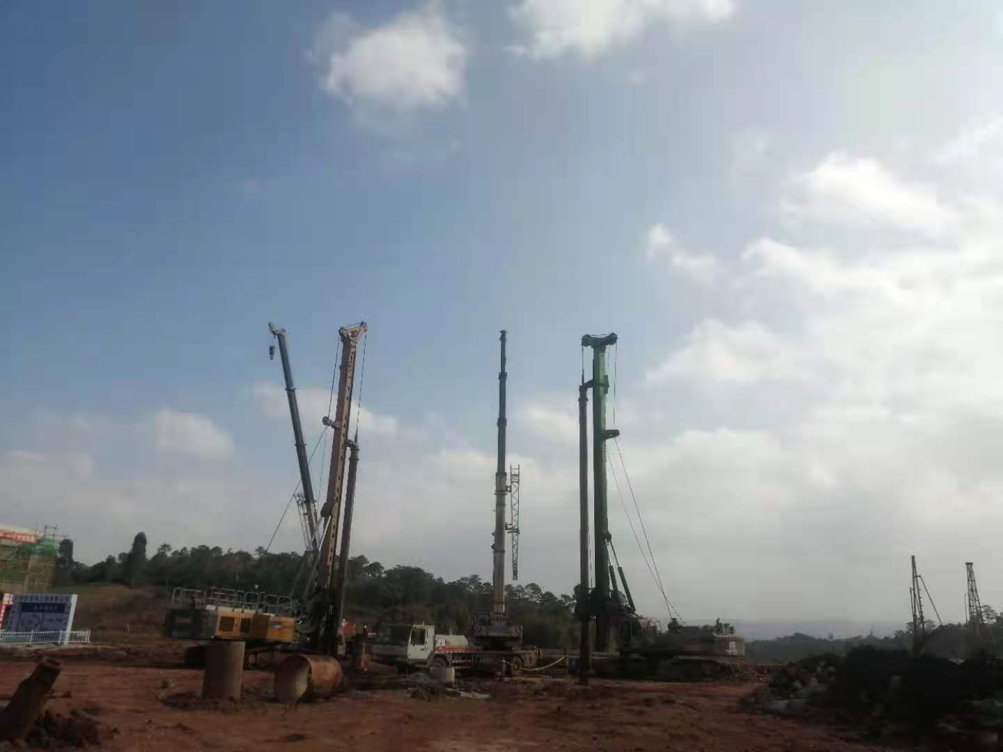 本工程于2020年09月28日開(kāi)工,至2021年2月3日完工,歷時(shí)129天,保質(zhì)、保量、安全完成全部施工任務(wù)。在施工過(guò)程中,根據(jù)勘察報(bào)告及超前鉆報(bào)告,樁基施工存在較多溶洞;同時(shí)根據(jù)施工圖紙要求,承臺(tái)樁樁長(zhǎng)差不能超過(guò)樁間距,最小樁長(zhǎng)6米,地質(zhì)情況特殊,個(gè)別孔需施工巖層2~10米,施工難度大。針對(duì)工程特點(diǎn),采用了帶合金條、合金豆等多種截齒進(jìn)行施工,較高效率的完成了施工任務(wù),保證了工程質(zhì)量,并確保無(wú)任何安全生產(chǎn)等事故。