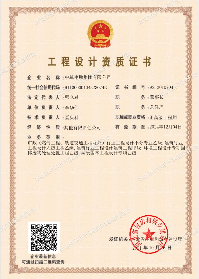 公司于2021年10月26日取得了環(huán)境工程設(shè)計(jì)專項(xiàng)(固體廢棄物處理處置工程)乙級(jí)資質(zhì)證書,可承擔(dān)中型以下規(guī)模環(huán)境工程(含建構(gòu)筑物和非標(biāo)準(zhǔn)設(shè)備等)專項(xiàng)設(shè)計(jì)。