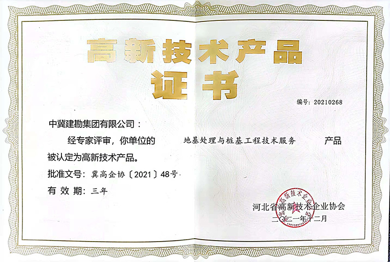 近日,河北省高新技術企業(yè)協(xié)會按照《河北省高新技術產(chǎn)品認定實施細則》要求,經(jīng)組織專家評價、評審、認定,我公司兩項技術“地基處理與樁基工程技術服務”和“巖土工程勘察設計技術服務”兩項技術服務榮獲“高新技術產(chǎn)品”稱號。本次榮獲“高新技術產(chǎn)品”稱號,標志著擁有自主知識產(chǎn)權及核心技術的兩項服務產(chǎn)品得到了行業(yè)協(xié)會的認可,進一步提升了公司技術服務的品牌競效應以及品牌的競爭力、影響力。同時“高新技術產(chǎn)品”是高新技術企業(yè)認定的重要依據(jù)和加分項,為公司2022年高新技術企業(yè)的期滿重新認定打下了良好基礎。