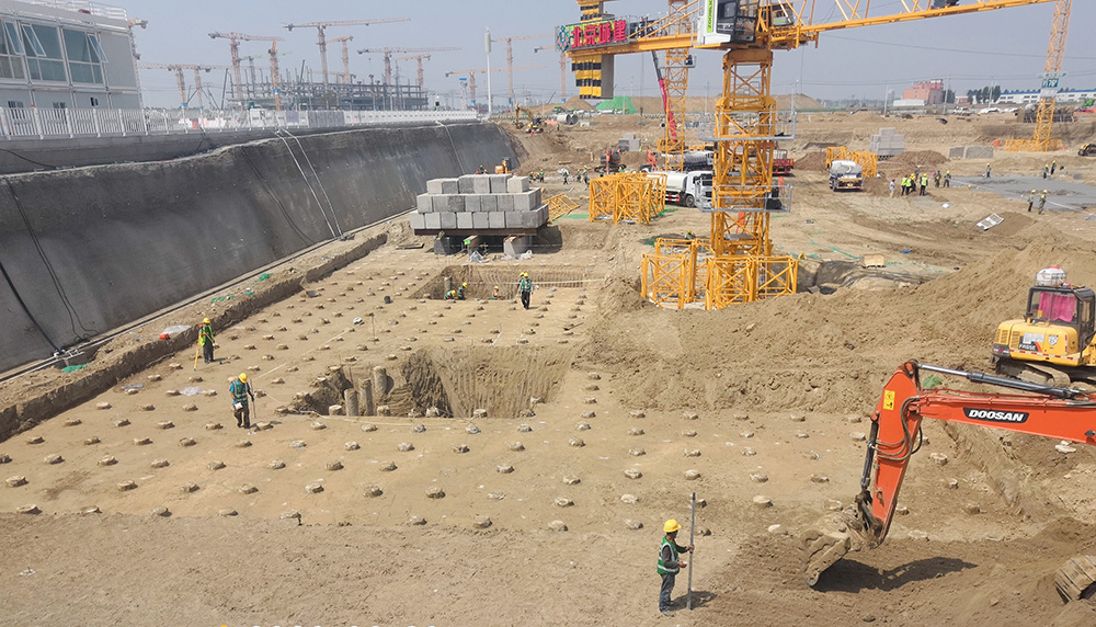 受中國雄安集團(tuán)城市發(fā)展投資有限公司委托,我公司承擔(dān)了雄安新區(qū)容東片區(qū) B1 組團(tuán)安置房及配套設(shè)施項(xiàng)目的土方工程、基坑支護(hù)工程(樁錨支護(hù),土釘墻和錨桿(索))、地基處理工程(水泥粉煤灰碎石樁)。