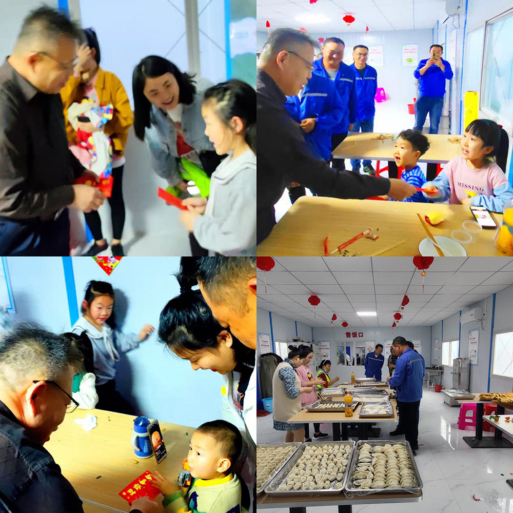 除夕之夜,項(xiàng)目部歡聲笑語、熱鬧非凡,洋溢著濃濃的春節(jié)氣息。李總與大家歡聚一堂,還為項(xiàng)目員工的孩子們準(zhǔn)備了新年紅包,員工家屬們也參與其中,包起了年夜餃子,大家其樂融融一起喜迎新年,讓沒能回家過節(jié)的員工們切實(shí)感受到大家庭的溫暖。