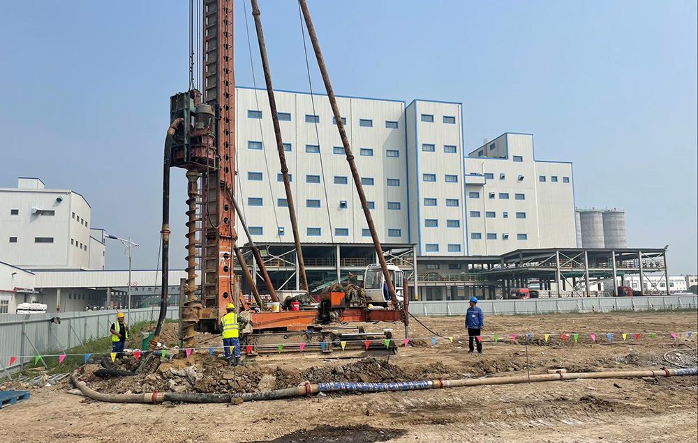 益海嘉里(安陽(yáng))食品工業(yè)有限公司三期1200T/D小麥制粉加工項(xiàng)目樁基工程位于河南省湯陰縣。受益海嘉里(安陽(yáng))食品工業(yè)有限公司委托,我公司承擔(dān)本項(xiàng)目樁基施工。主要工作內(nèi)容包括:CFG樁施工(成孔、壓灌混凝土)、后注漿灌注樁樁基施工(包括成孔、鋼筋籠制安、砼灌注、渣土外運(yùn))、混凝土道路破除及外運(yùn)等。