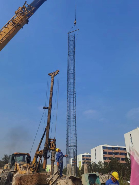 本項目位于河北邯鄲永年縣,受河北永洋特鋼集團有限公司委托,我公司承擔(dān)本項目樁基施工。基礎(chǔ)采用混凝土灌注樁,工程內(nèi)容為全套管旋挖機械成孔、清運余土(渣土)、鋼筋籠制作及安放、混凝土澆筑、鑿樁頭、清運及場地平整。工作量為樁徑800mm混凝土灌注樁174根。
