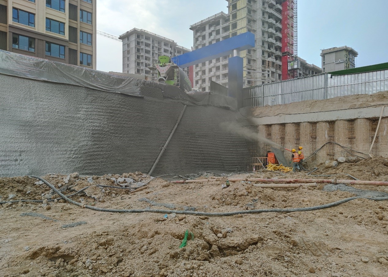 本項目在施工期間項目部人員積極與總包、設(shè)計、監(jiān)理等單位現(xiàn)場人員協(xié)調(diào)溝通,科學(xué)合理組織調(diào)度,嚴格控制質(zhì)量安全,并采用濕噴機進行噴面作業(yè),大大加快了施工效率,較好的完成了各項任務(wù)目標。本工程基坑支護分3個分項,共計12個檢驗批,其中錨桿檢驗批4個,灌注樁排樁檢驗批4個,土釘檢驗批4個。經(jīng)檢驗,主控項目全部合格,一般項目滿足規(guī)范要求,為后續(xù)施工的順利開展打下了良好的基礎(chǔ)。