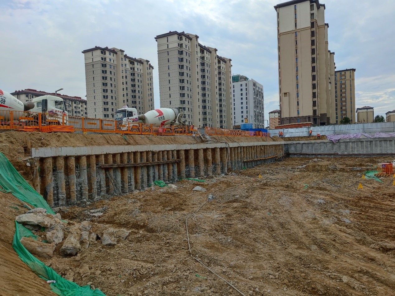 本項目于2021年06月09日正式開工,2021年08月27日施工完成,施工工期為80日歷日。 在全體施工人員的共同努力下,共完成噴面約2540m²、土釘約4310m、錨索約3170m、鋼腰梁約520m、冠梁約325m、擋水墻約280m;鉆孔灌注樁共完成331根,其中直徑0.6m支護樁完成212根,0.8m支護樁完成45根,直徑1.0m樁完成62根;直徑0.6m試樁完成6根,直徑0.8m試樁完成6根。