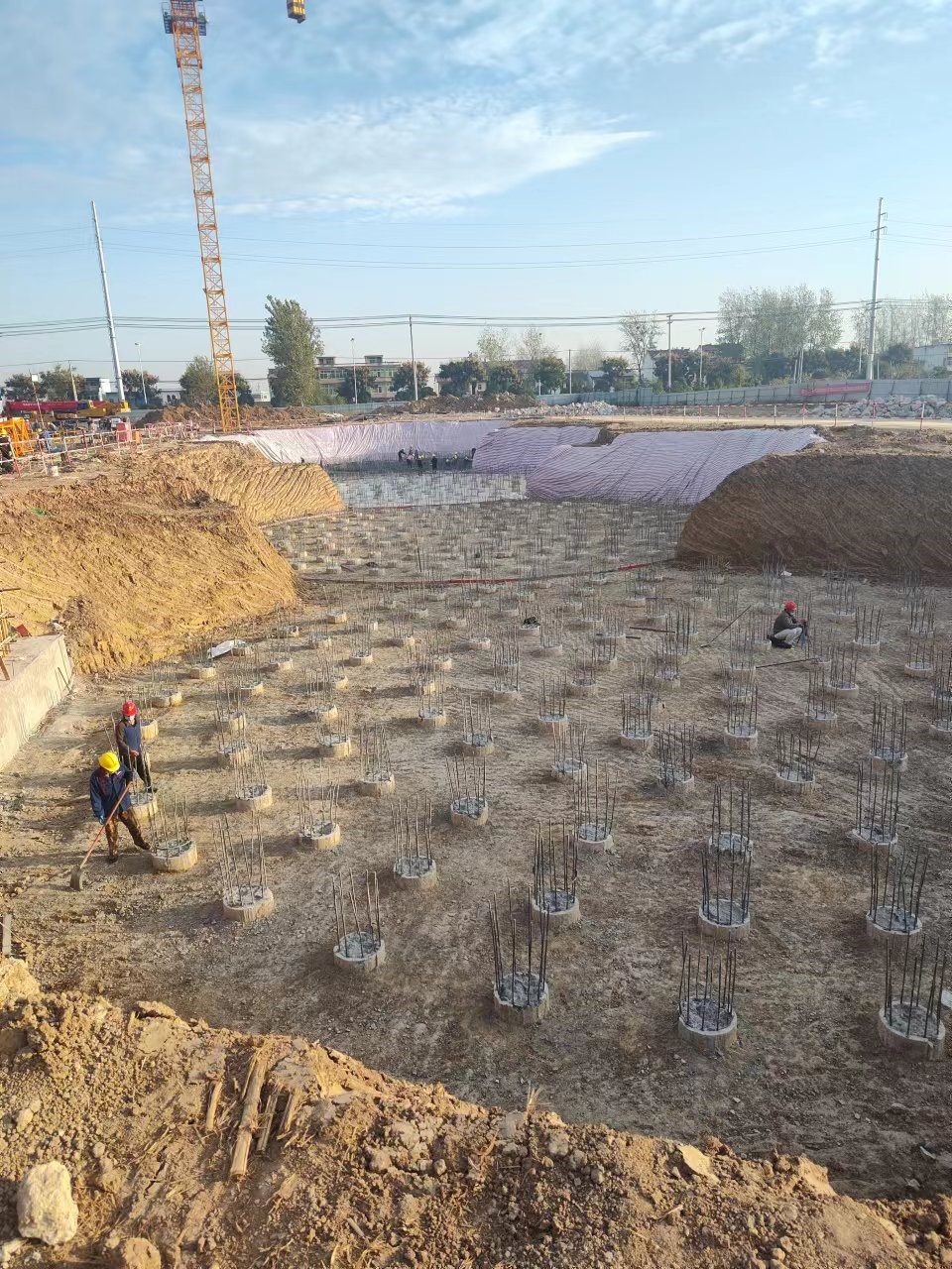 本項目位于阜陽市潁東區(qū),由安徽昊源化工集團有限公司投資建設,我公司負責本項目樁基施工。施工場地為潁河漫灘,以粉質(zhì)黏土、粉土為主,地下水位在26m左右。設計樁型為旋挖鉆孔灌注樁,筒倉設計樁長約30m,樁徑600mm,樁數(shù)500余根。于2022年8月3日開工,2022年10月25日完工。