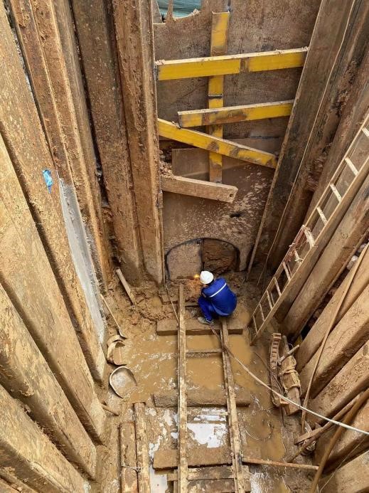 本工程因施工區(qū)域位于場內(nèi)道路兩側(cè),施工空間受限,人工頂管工作基坑開挖尺寸受限,且不能放坡開挖,并且現(xiàn)場消防水管、光纖管等既有管線多,地下水位淺,施工難度較大。定向鉆穿越施工同樣也是探明地下既有管線,按圖紙要求并考慮延長設(shè)計(jì)穿越路徑,并在穿越過程中通過傳感器發(fā)出的信號及時(shí)調(diào)整偏差,在項(xiàng)目部的精心組織和實(shí)施下,最終順利完成所有路段的管道穿越任務(wù)并交付。