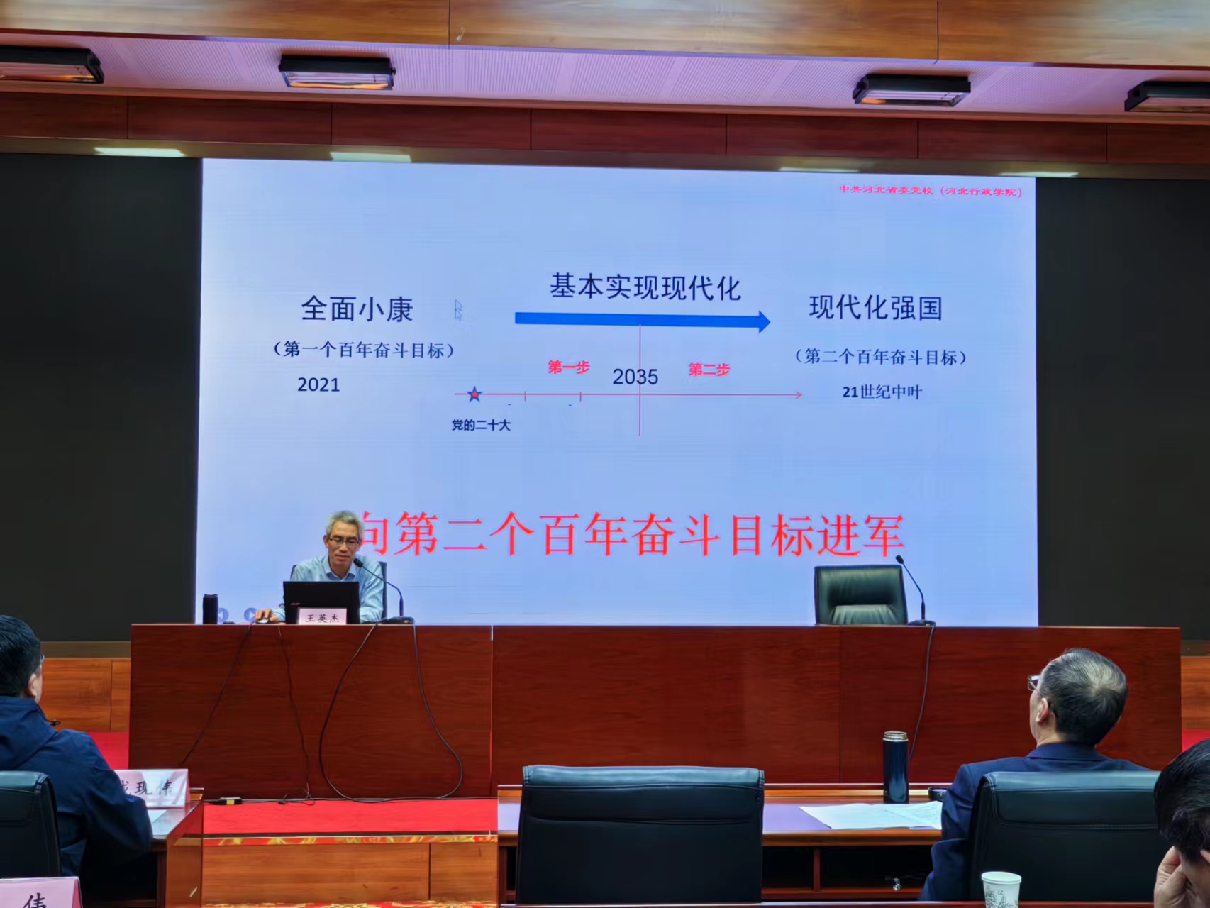 省委黨校王英杰教授講授的《全面建設(shè)社會(huì)主義現(xiàn)代化國家的政治宣言和行動(dòng)綱領(lǐng)—深入學(xué)習(xí)貫徹黨的二十大精神》,深刻闡述了黨的二十大在黨的歷史上的重要地位,以及新時(shí)代十年在中華民族發(fā)展史上所具有的里程碑意義,充分分析了當(dāng)前國際國內(nèi)發(fā)展形式、如何準(zhǔn)確把握習(xí)近平新時(shí)代中國特色社會(huì)主義世界觀和方法論,重點(diǎn)講述了新征程上黨的偉大的自我革命的必要性。