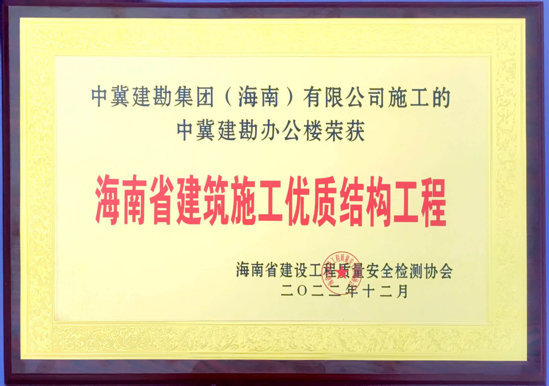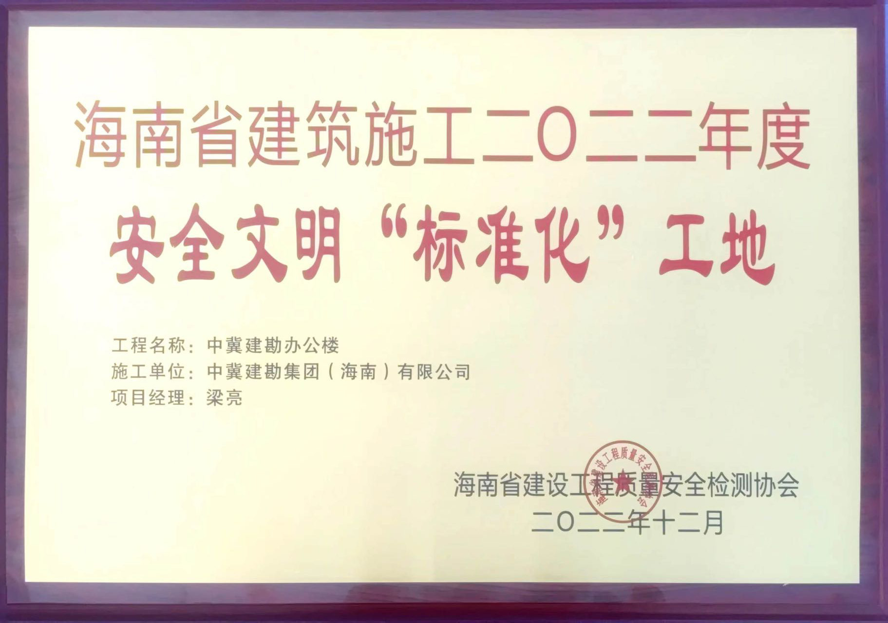 中冀建勘辦公樓榮獲“海南省建筑施工優(yōu)質(zhì)結(jié)構(gòu)工程”及海南省建筑施工二0二二年度安全文明“標(biāo)準(zhǔn)化”工地榮譽(yù)稱號(hào)