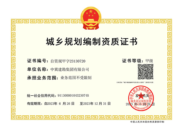 經(jīng)過(guò)10個(gè)月的精心準(zhǔn)備和實(shí)施,集團(tuán)公司于2023年6月26日通過(guò)了自然資源部城鄉(xiāng)規(guī)劃編制單位資質(zhì)審查,喜獲城鄉(xiāng)規(guī)劃編制單位甲級(jí)資質(zhì)。城鄉(xiāng)規(guī)劃編制單位甲級(jí)資質(zhì)是規(guī)劃行業(yè)的最高資質(zhì)等級(jí),該資質(zhì)的取得將有力促進(jìn)公司城鄉(xiāng)規(guī)劃編制業(yè)務(wù)開(kāi)展,對(duì)公司轉(zhuǎn)型升級(jí)、地方市場(chǎng)開(kāi)拓將起到重要作用,為公司持續(xù)穩(wěn)定發(fā)展奠定更加堅(jiān)實(shí)的基礎(chǔ)。