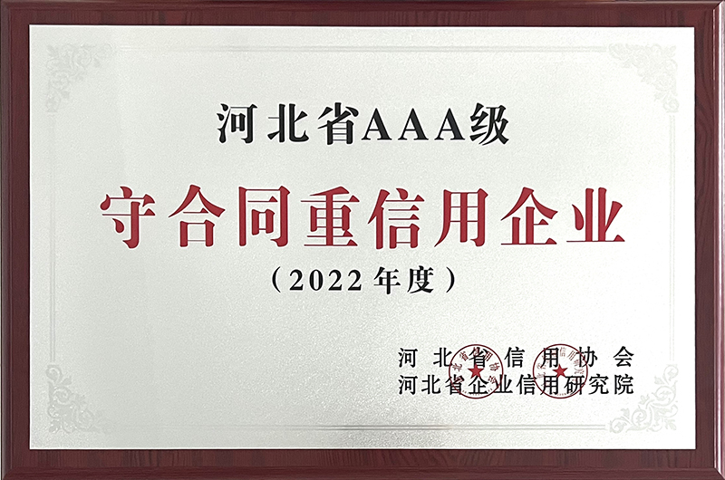 根據(jù)河北省信用辦、河北省信用協(xié)會(huì)等七部門(mén)印發(fā)的《關(guān)于開(kāi)展“推進(jìn)誠(chéng)信建設(shè)共建信用河北”的活動(dòng)方案》的通知,以及河北省信用協(xié)會(huì)、河北省企業(yè)信用研究院印發(fā)的《關(guān)于2022年度“河北省守合同重信用”企業(yè)申報(bào)認(rèn)定工作的通知》,我公司被評(píng)為“河北省AAA級(jí)守合同重信用企業(yè)”。
