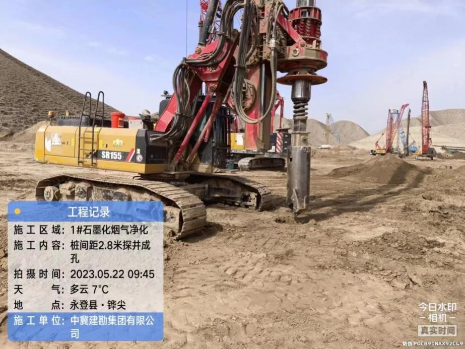 蘭碳一期6萬噸碳電極項(xiàng)目SDDC樁施工工程于2023年05月24日開工, 2023年6月23日完工。經(jīng)過SDDC樁處理后,本工程的黃土問題得以改善,地基承載能力有所增強(qiáng)。此工藝具有高效、工期短的特點(diǎn)。對(duì)回收的黃土進(jìn)行資源化處理,減少了工程支出。