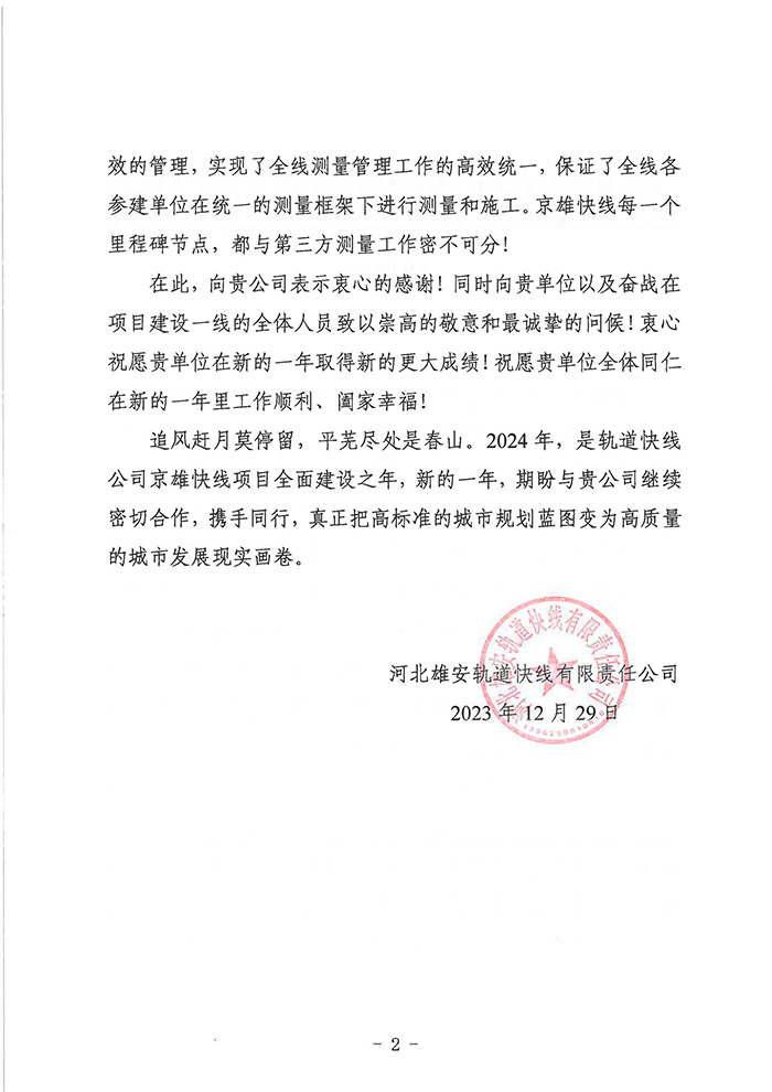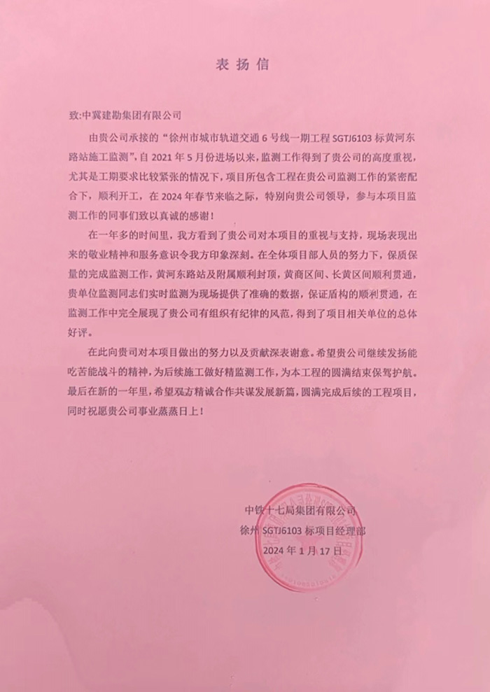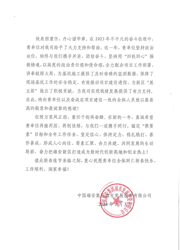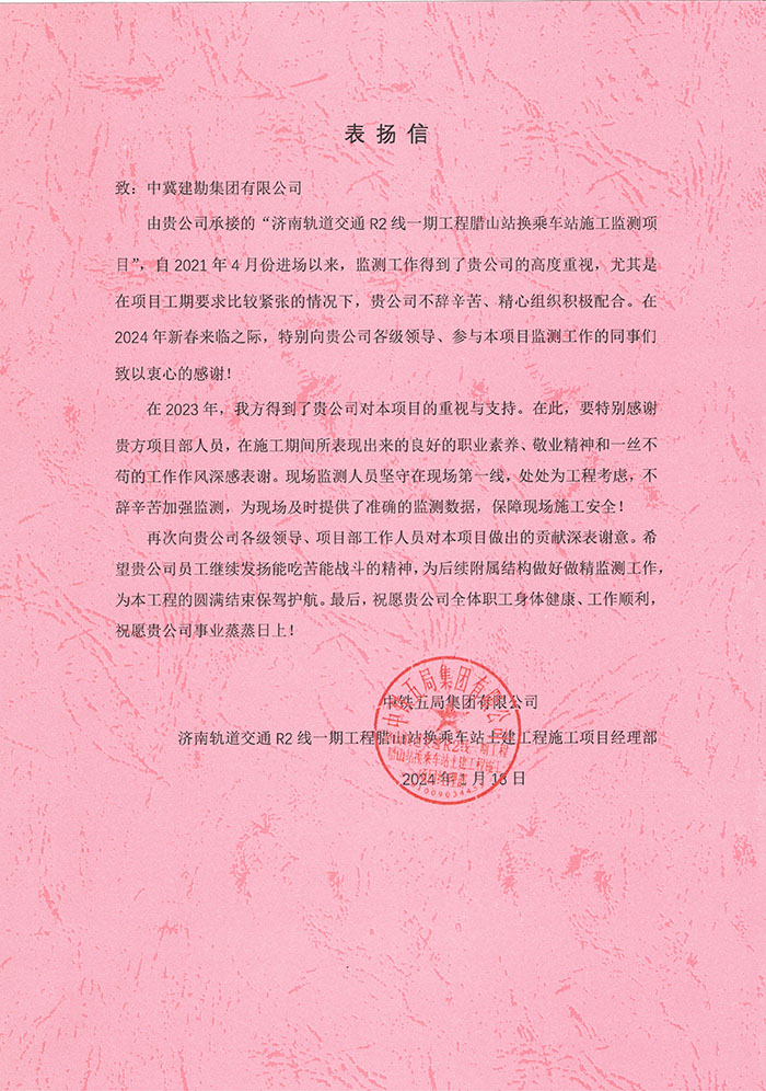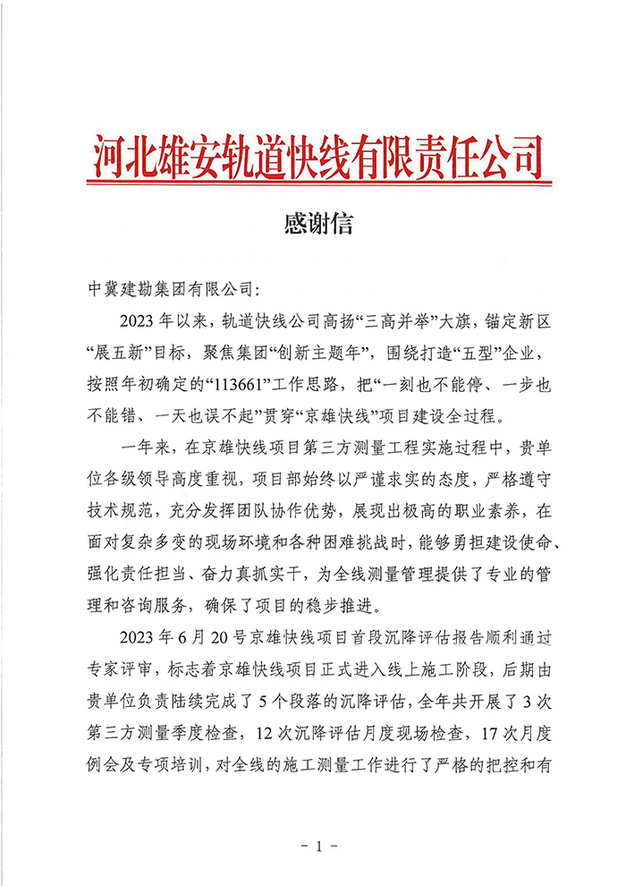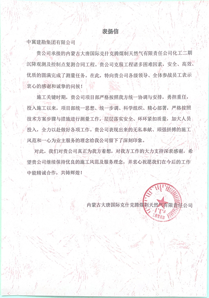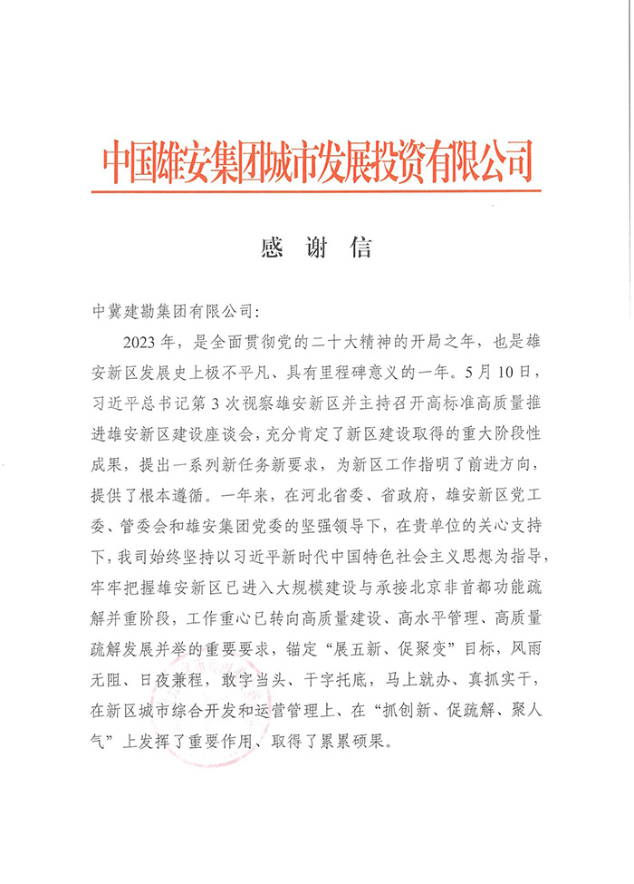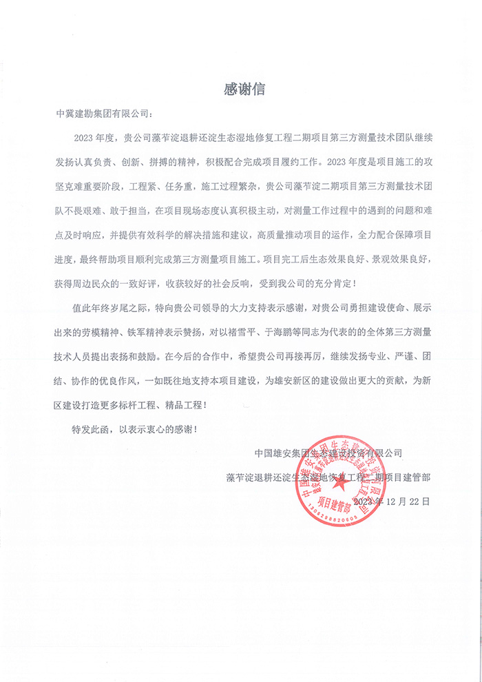 近期,公司陸續(xù)收到中國雄安集團城市發(fā)展投資有限公司、河北雄安軌道快線有限責(zé)任公司、中國雄安集團生態(tài)建設(shè)投資有限公司、中鐵五局、中鐵十七局、鄭州地鐵集團、內(nèi)蒙古大唐國際克什克騰旗煤制天然氣電廠、大唐內(nèi)蒙古多倫電廠等業(yè)主單位發(fā)來的感謝信。我公司認(rèn)真負(fù)責(zé)、敢打能打硬仗的工作態(tài)度、頑強拼搏的施工風(fēng)范和一心為業(yè)主服務(wù)的理念,贏得了業(yè)主的高度認(rèn)可和贊揚,特發(fā)來感謝信深表感謝!