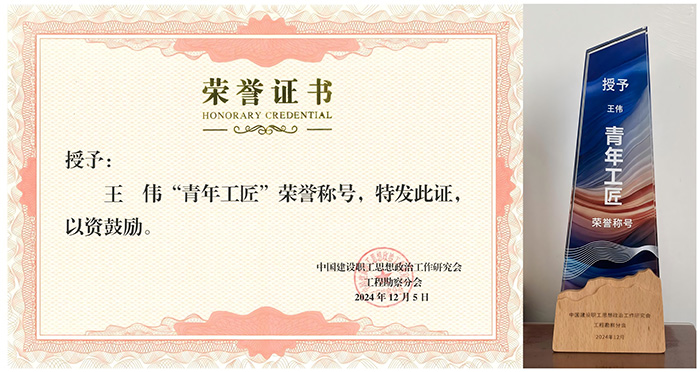 經(jīng)公司積極申報(bào)推薦,中國建設(shè)職工思想政治工作研究會工程勘察分會嚴(yán)格審核,一公司經(jīng)理王偉同志榮獲“青年工匠”榮譽(yù)稱號。
