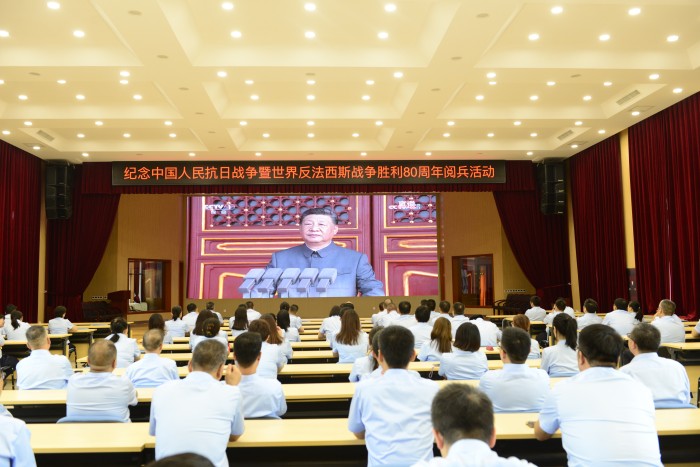 9月3日上午9時(shí),集團(tuán)公司在石家莊機(jī)關(guān)辦公樓五樓會(huì)議廳組織近150名職工集中觀看了“紀(jì)念中國人民抗日戰(zhàn)爭暨世界反法西斯戰(zhàn)爭勝利80周年大會(huì)”直播盛況。