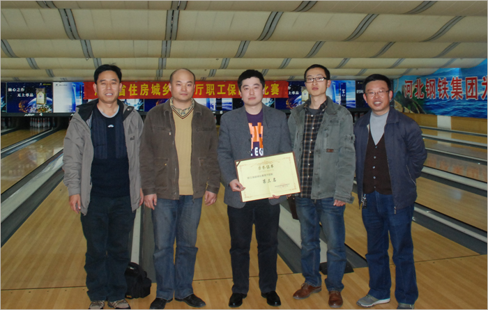 11月10日,河北省住房和城鄉(xiāng)建設(shè)廳職工保齡球比賽在太行賓館保齡球館火熱開賽。我公司派出陳寧、王永周、胡建林、王利鋒、唱曉剛組成的河北建勘保齡球隊,角逐男子團體和個人排名賽。在熱火朝天的比賽中,我參賽選手士氣高漲,在比賽中學(xué)習(xí)揣摩,在比賽中實踐,最終在這項完全陌生的運動項目中獲得總分1200分,取得了團體第三名的好成績。