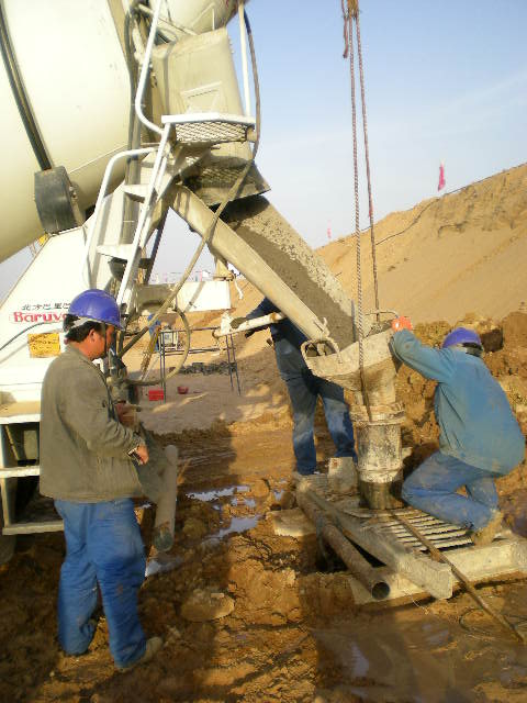 該工程位于陜西省榆林市西南的橫山縣白界鄉(xiāng)馬扎梁村附近,包括空冷區(qū)域,主廠房區(qū)域樁基。樁基工程自2008年4月26日開(kāi)工,至2009年3月18日竣工,實(shí)際完成鋼筋混凝土灌注樁1981根,設(shè)計(jì)砼方量36252.75m3,澆筑混凝土39664.2m3。