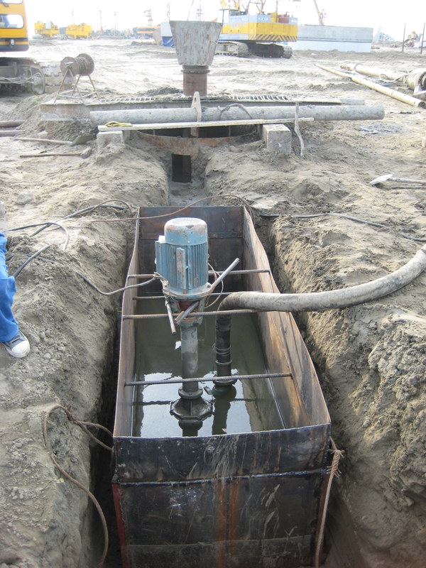 本工程自2008年8月26日開工,至2008年12月30日竣工,采用三岔雙向擠擴后壓漿鉆孔灌注樁,砼等級C40,灌注樁樁徑1.4m,2b型地下樁長為58.9m,樁數(shù)為16根;1a、1b、2a、2c型地下樁長為55.3m,樁數(shù)為344根;地上樁長均為1.8m,每根樁三個盤徑2.4m的承力盤,共360根樁,并完成了樁端后壓漿、鑿樁頭及地面接樁工作;振動沉管碎石樁樁徑為0.35m,地下樁長為20m,共完成2181根,碎石墊層12897 m3。