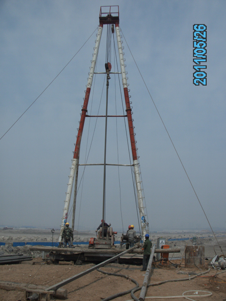 河北省地震局為加強(qiáng)地震觀測(cè)工作,在冀東地區(qū)布置井下地震觀測(cè)點(diǎn)三個(gè),要求井深300m,井徑146mm,成井后井內(nèi)不得有水,不得有磁反映,確保儀器能夠安放至井底。