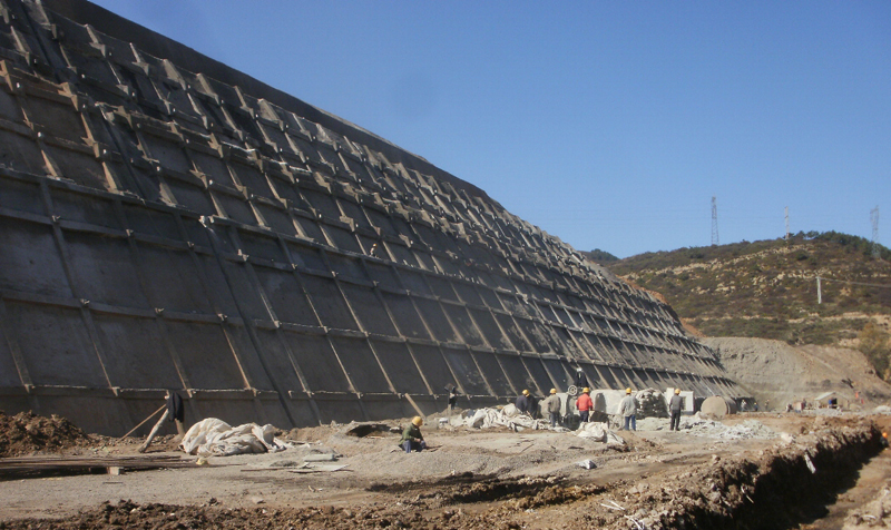 4.第四五級(jí)邊坡:土釘599根,噴射混凝土鋼絲網(wǎng)護(hù)坡1952㎡。