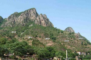 磁縣陶泉鄉(xiāng)南王莊位于冀西南群山之中。近年來,北側(cè)“道士帽”山峰下曾發(fā)生過巖石崩落,造成一處民宅被砸,威脅約20余戶居民。隨著時(shí)間的推移,在各種地質(zhì)作用下,尤其是降水、凍融的影響,存在著繼續(xù)發(fā)生崩塌的隱患。為了村民的生命、財(cái)產(chǎn)安全,達(dá)到防災(zāi)減災(zāi)的目的,受磁縣國(guó)土資源局的委托,我公司進(jìn)行了崩塌治理勘察工作。