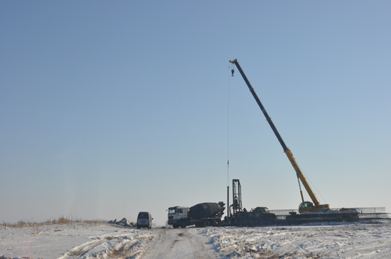 華能大慶綠源風(fēng)電五棵樹風(fēng)電場以及華能大慶綠源風(fēng)電新立風(fēng)電場樁基工程均位于黑龍江省大慶市大同區(qū)五棵樹以北。本工程為風(fēng)機承臺下鉆孔灌注樁施工,地層主要以粉土為主。施工時采用回轉(zhuǎn)鉆機反循環(huán)成孔,本項目共完成直徑800mm鉆孔灌注樁814根,灌注混凝土14133.43 m3,鋼筋加工1573.71t,后壓漿1440m3。