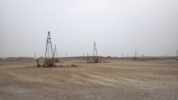 一期勘探孔451個,總進尺17351m;二期勘探孔475個,總進尺18310m??碧竭^程中采用了鉆探、靜力觸探、標準貫入試驗、波速測試、電阻率測試等多種方法。根據(jù)現(xiàn)場揭露的土層和建設(shè)單位提供的建筑物結(jié)構(gòu)型式、基礎(chǔ)形式、基礎(chǔ)埋深、地基基礎(chǔ)方案等,對可能的天然地基、復合地基和樁基礎(chǔ)分別進行了分析及建議。